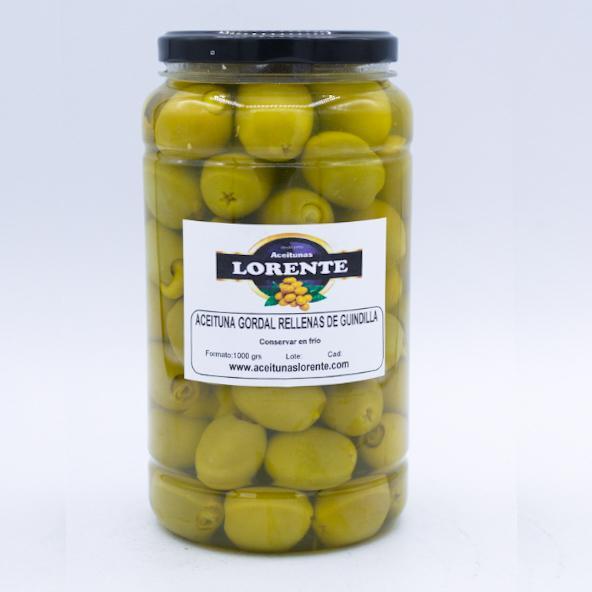 Gordal stuffed with chilli pepper. It is one of the spiciest stuffed olives that we have, a fine and pleasant taste of the olive combined with the chilli.